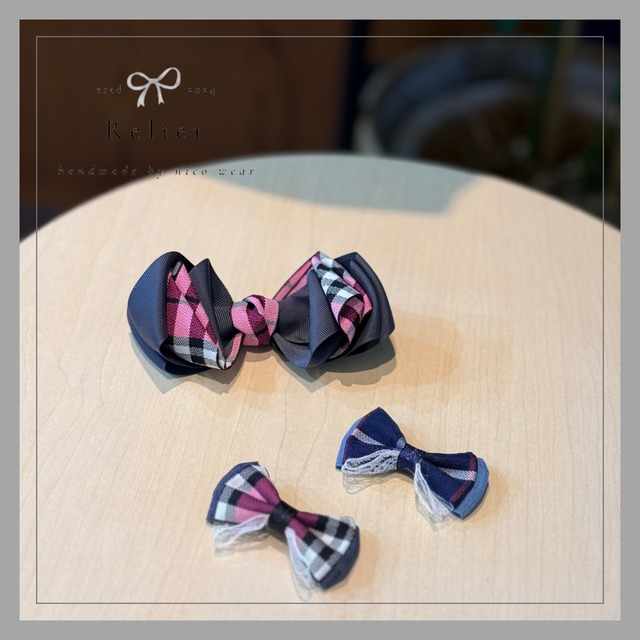 春に向けてスクールコーデにいかがでしょうか♡ チェックにデニムを合わせたダブルリボン お揃いでママ用リボンもあります♪ ママ用はチョーカーにも♡ 数量限定です♪ ◎商品のお色は、屋内や光源の度合で画像と誤差が出る場合がございます。 また、スマートフォンやPCなどのモニターの使用環境によって、実際の商品のお色と実物が少し異なって見える場合がございますので、 ご理解の上ご購入下さいますようお願い致します。 ◎一つひとつ丁寧にお作りしていますが、ハンドメイドの為左右差にバランスのズレがある場合がございます。ご理解の上ご購入ください