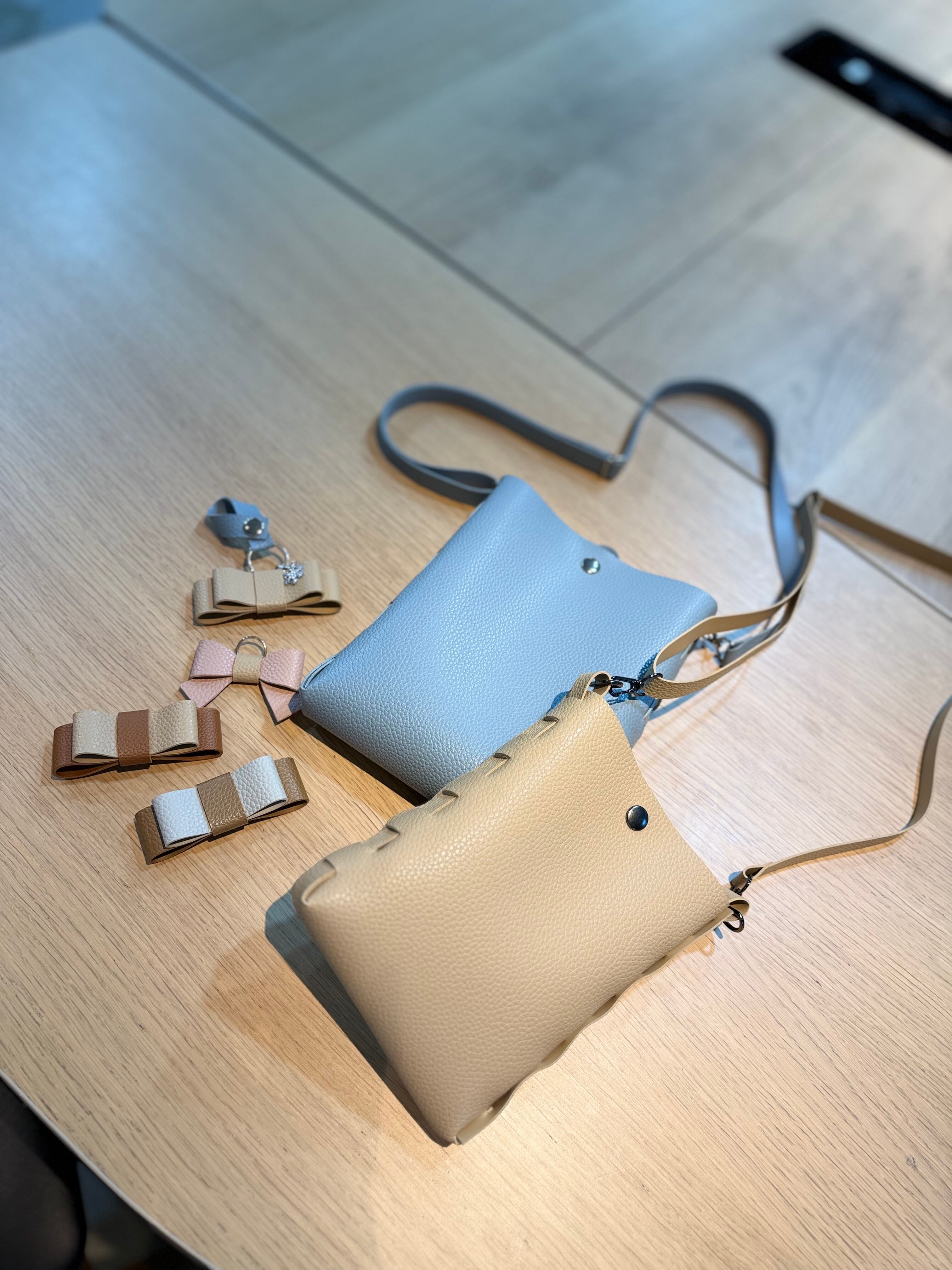 別売りのシンプルホルダーや、レザーチャームを合わせて頂きますとよりオリジナルでかわいいショルダーバッグに♡