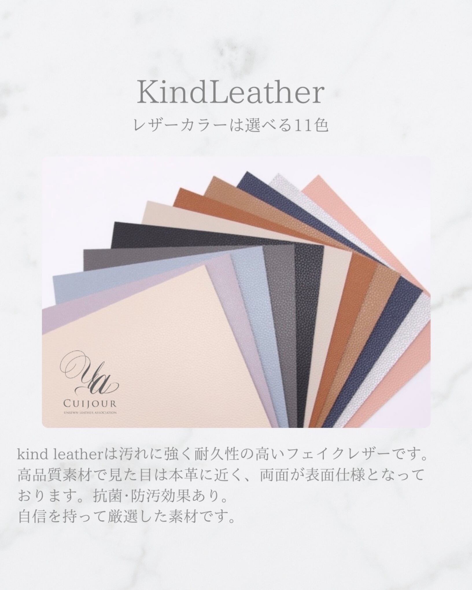 kind leatherは汚れに強く耐久性の高いフェイクレザーです。