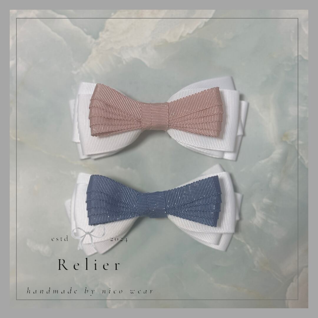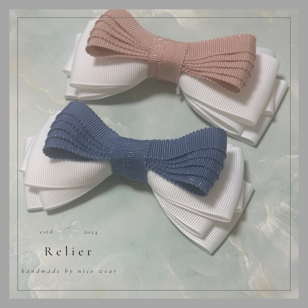 ホワイトのリボンにラメのペタシャムリボンでお上品リボン♡